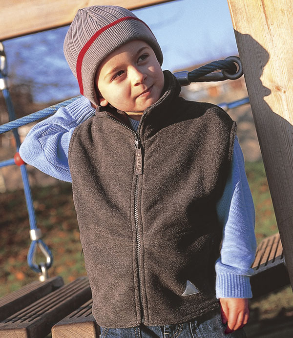 Kids will love to wear this active fleece bodywarmer that features reflective safety triangles on both the front and back